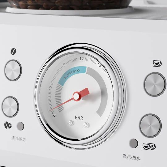可視壓力表實時觀察萃取壓力,萃出金杯豐厚油脂;使用意大利UKLA泵,壓力泵最大可達20bar壓力,預浸泡之后充分萃取,釋放意式濃縮的黃金油脂