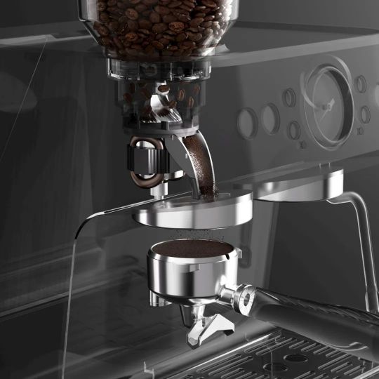研磨咖啡粉無需接粉杯裝粉,直接取粉,內置靜電設計,研磨不飛粉,取下手柄壓粉更便捷,保持操作臺整潔???♀?
