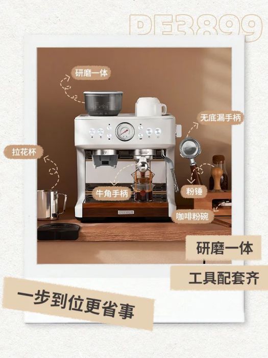 與其這么麻煩,為何不購入一臺研磨一體的咖啡機呢???柏翠咖啡家新成員個性化一體機【PE3899雙鍋爐雙手柄研磨一體意式咖啡機】!星光海鹽白,獨立雙鍋爐,配置齊全,咖啡小白進階大師一步到位,打造屬于你的頭號玩“咖”!