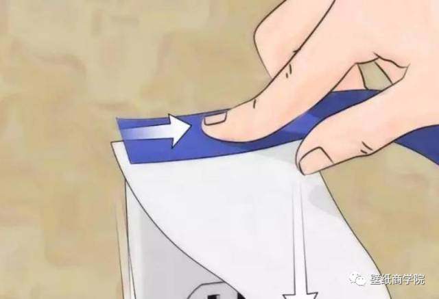 6、剝離壁紙。借助塑料油灰刀,一次性把壁紙分塊撕下來;向上撕扯。這樣油灰刀在撕開的壁紙和墻面之間更容易發揮作用。