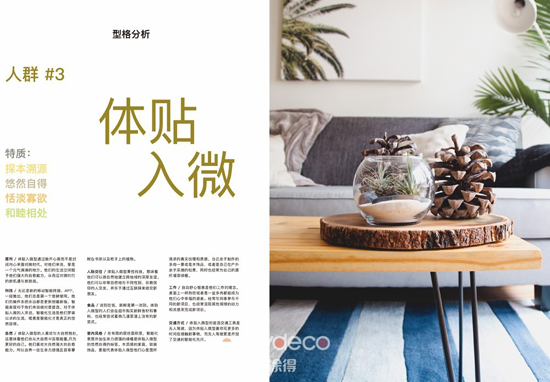 通過對2萬以上的消費者色彩心理習慣的采集,最后研究中心得出了以下三個主題,這個主題是,覺得當下的社會是一個數(shù)字化的時代,人與人之間的關(guān)系變得日益的疏遠,人們愿意每天對著手機,對著平板電腦,獨自相處,人與人之間的距離日漸疏遠,環(huán)境倒是沒有以前想象得好,環(huán)境的問題、人際關(guān)系的問題、生活方式的問題,我們回來發(fā)現(xiàn)現(xiàn)在生活反而應該更具有保護感,而不是具有時尚度,對于人的療愈,對于人的生活方式,對于人需要安全的回來做自己的,回歸自然的,增進人與人之間的交流的特質(zhì),成了很多人群的心理所需。