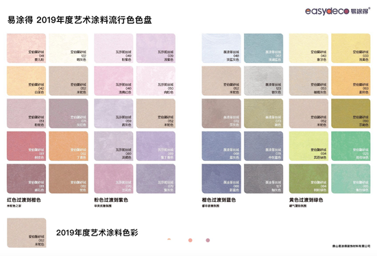 不僅消費者可以選擇關(guān)注這樣的肌理,而且在這樣的肌理底下顏色也是非常豐富,可謂是顏色與肌理相得益彰,我們有一句話叫做“只談顏色不足以談顏色,而不談顏色則不足以談其他”,顏色和材質(zhì)、肌理和光影一樣,共同構(gòu)成了生活中的環(huán)境,也讓人們在這個環(huán)境中得到美的享受,所以易涂得推出了趨勢色、趨勢肌理,這是我們對市場的一個判斷,對市場的一個預期,也希望與消費者一起共同打造屬于我們自己美好的生活。