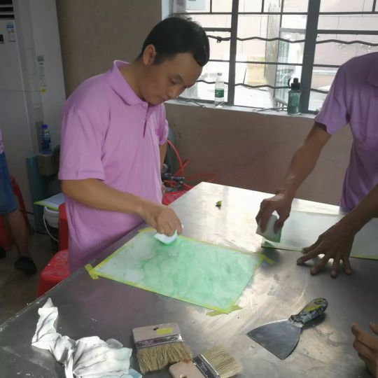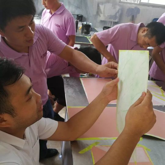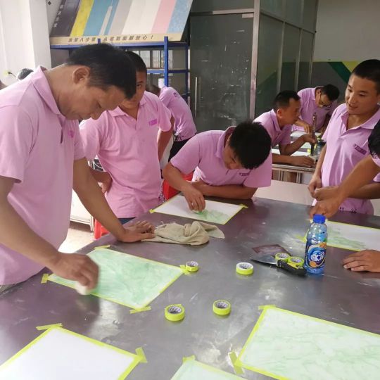 底漆施工、基礎漆施工、刷涂施工、中涂施工、印花擦色、色塊效果等等,逐一講解并演示,并且讓學員現(xiàn)場實操。