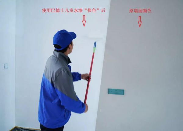 巴德士藝術(shù)涂料-兒童水漆,為整屋墻面提供“換色”服務(wù)(原墻面呈黃灰色)