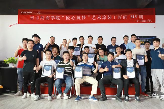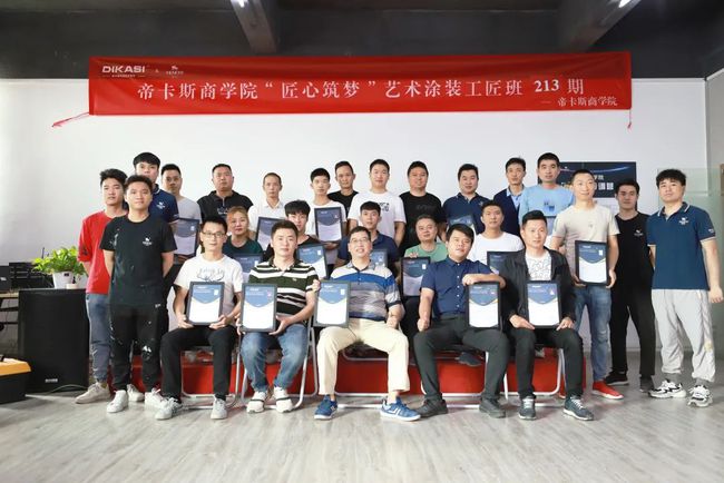 今天恰逢帝卡斯“匠心筑夢(mèng)”藝術(shù)涂裝213期工匠班結(jié)業(yè)的日子。這是2021年帝卡斯工匠班“首秀”,同時(shí)也是帝卡斯總部開(kāi)展的第213期工匠班。