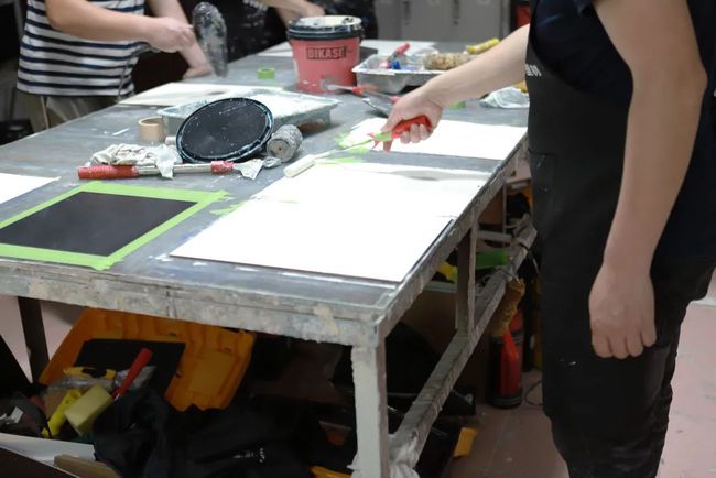 在實(shí)操中,通過(guò)樣板制作,新學(xué)員初次接觸了產(chǎn)品的施工性能,這讓大家對(duì)大面積施工有了信心和操刀嘗試的欲望。老學(xué)員,也不敢懈怠,時(shí)刻起到“帶頭”作用,秉著虛心好學(xué)、精益求精的工匠精神,依然一遍一遍的滾涂、批膩?zhàn)印哌叺取?/p>