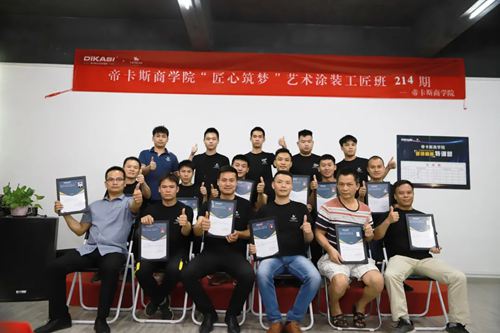 帝卡斯商學(xué)院藝術(shù)涂裝工匠班將繼續(xù)貫徹“以人為本·守護(hù)健康”的企業(yè)理念,進(jìn)一步擴(kuò)大工匠班對藝術(shù)涂料行業(yè)及帝卡斯盟友人群的覆蓋面,提高工作的系統(tǒng)性、標(biāo)準(zhǔn)性、針對性和實(shí)效性,為藝術(shù)涂料行業(yè)穩(wěn)步推進(jìn)、傳承涂裝工藝貢獻(xiàn)力量,并發(fā)揚(yáng)工匠精神,造就一個又一個“現(xiàn)代藝術(shù)魯班”!