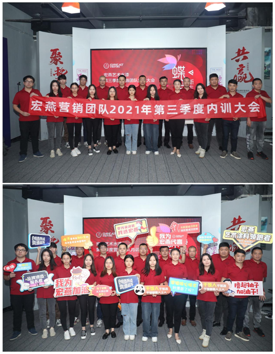 聚勢成大業(yè),揚(yáng)帆踏征途。為打造一支業(yè)務(wù)技能過硬的營銷團(tuán)隊(duì),更好服務(wù)市場、服務(wù)客戶、服務(wù)經(jīng)銷商,宏燕藝術(shù)水漆廠家于2021年10月27日舉行“蝶變新生·宏燕藝術(shù)水漆第三季度營銷團(tuán)隊(duì)”內(nèi)訓(xùn)大會(huì)。