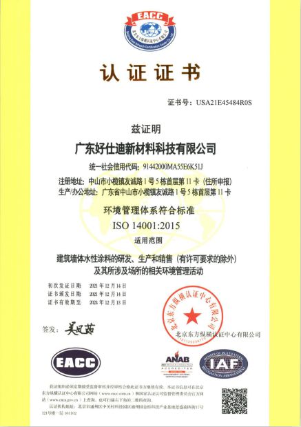 好仕迪以綠色環保為導向,以質量管理為基礎,以精細化服務為原則,所有產品采用水性環保材料,達到GB18582-2020國家標準,環保凈味、安全無毒,嚴密監控生產流程,嚴格控制涂料的質量,產品通過法國A+認證、SGS認證等。