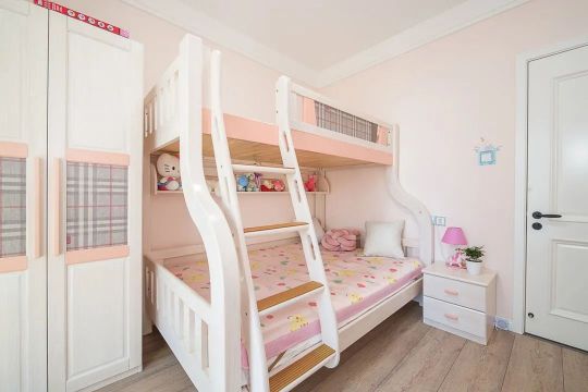 考慮到是女孩,兒童房則以藝術涂料的粉色為主,加入一些灰色降低飽和度,避免太過粉嫩,不適用于孩子成長之后的年齡段。家具不論是色彩還是格調(diào)都和兒童房風格很般配,整體簡潔耐看很溫馨。