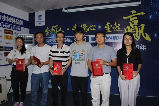 表彰會上,宋董對二季度家裝事業(yè)部工作進行了簡要總結(jié),要求大家樹立憂患意識,總結(jié)經(jīng)驗,強化目標,更好地服務(wù)代理商,將代理商政策圓滿落地,宋董還向全體家裝事業(yè)部員工致以真誠的謝意。