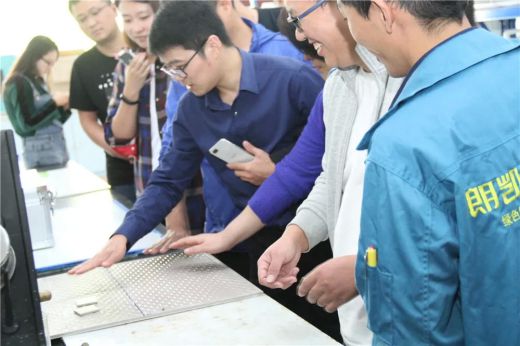 在國購集團采購部王培芹、設計部黃光亮、成本部任金濤帶領下,國購集團一行十余人先后參觀了朗凱奇生產基地產成品車間、科研中心實驗室、博物館、行政辦公總部等。