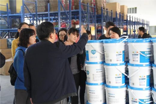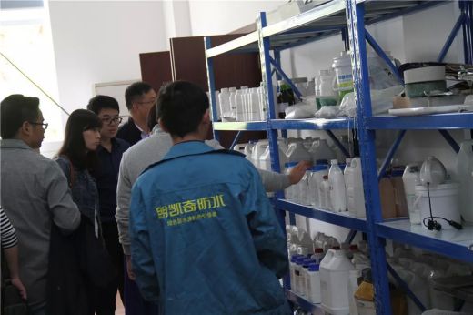 △參觀成品車間朗凱奇生產部負責人孫杰首先對朗凱奇各類防水產品進行了詳細介紹,隨后大家來到生產車間,先進的自動化粉料、乳液生產設備讓大家不斷駐足稱贊。