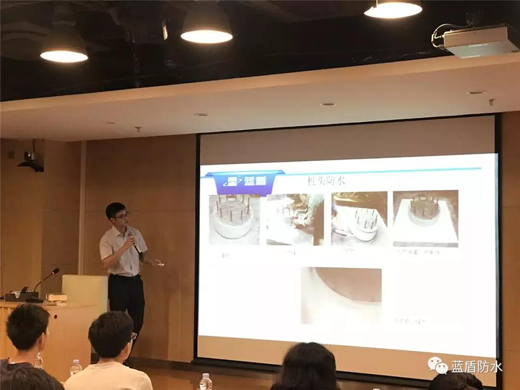 面對(duì)變形縫防水問題,一直是困擾防水行業(yè)的一個(gè)復(fù)雜課題。藍(lán)盾經(jīng)過多年的研究,并最終研發(fā)出了一整套變形縫防水處理專利技術(shù)。以藍(lán)盾特種環(huán)氧樹脂膠粘劑、進(jìn)口特制PVC止水帶、特制泡沫止水橡膠棒等為主要材料,結(jié)合專利實(shí)用技術(shù)做法,根據(jù)不同變形縫的形式定制不同的解決方案。該材料和專利做法是變形縫防水技術(shù)領(lǐng)域的一大進(jìn)步,領(lǐng)先國(guó)際水平。彭總就關(guān)鍵技術(shù)做法,以及相關(guān)案例進(jìn)行深入剖析。設(shè)計(jì)師們聚精會(huì)神聽課的同時(shí),積極發(fā)言提問,對(duì)此技術(shù)表現(xiàn)出濃厚的興趣與認(rèn)可。