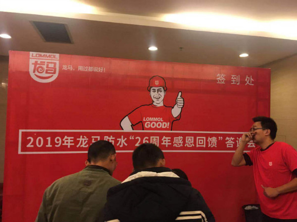 11月28日,龍馬防水材料于湖南省懷化市和廣東清遠英德各自舉辦“惠聚金秋”感恩答謝會。現場,伴隨龍馬防水材料發布主題活動購買政策,在先前早已毫不猶豫的經銷商及老板們便競相找準時機,如潮水般涌進購買臺,同時向相關工作人員詳盡咨詢政策后,快速簽名購買,簽約總金額也如節節攀升般快速暴漲。在龍馬防水材料相關工作人員開展一番現場產品介紹后,龍馬防水產品現場看得清、摸得著的品質優點,再度折服了現場人員,因此又掀開了一波購買的高潮,現場氣氛越來越熱烈!據現場相關工作人員透露,現場訂單超火熱,自身都被等候付款的經銷商們擠了出去。