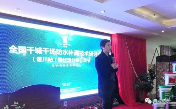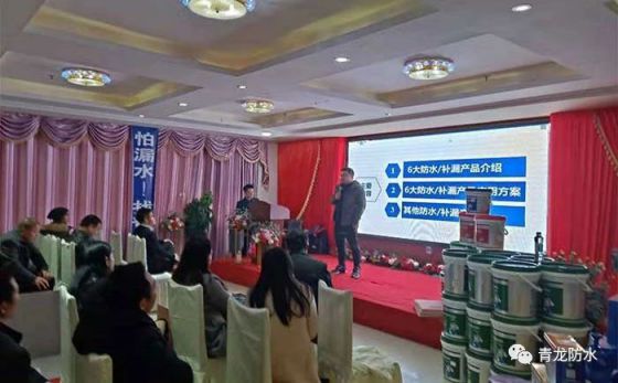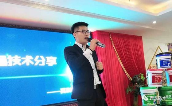 研討會首先從青龍遂川代理商羅總的開幕致辭開始。羅總真情分享了其加盟青龍公司的經歷和個人感受,并以業務工程為案例,將青龍特色防水材料產品與其他品牌產品相比較,介紹其對青龍產品的認識和防水補漏效果。羅總表示,經歷這么多年的防水從業經歷,非常認可青龍防水材料產品,相信會越做越順暢。