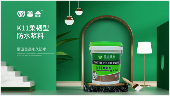 以通用型K11防水漿料為例,其是由特種丙烯酸乳液及特種礦物粉末配制而成的雙組份水泥基防水材料。兩種材料混合后發(fā)生聚合反應(yīng),既形成表面涂層防水,又能滲透到底材內(nèi)部形成結(jié)晶體阻遏水的通過,達(dá)到雙重防水效果,具有抵御靜水壓、防潮防霉、抗酸堿性等優(yōu)良性能。