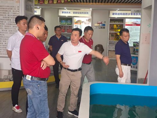 5月25日,佛山市湖南省衡山商會新橋分會領導等一行人蒞臨佛山市福地斯建筑防水材料有限公司參觀指導,在董事長劉少東、運營總監彭張可、總經理朱岳林的陪同下,深入辦公場所,產品體驗館,展銷大廳現場指導各項工作,詳細了解我司的人員管理,生產安全,產品質量及工作流程等情況,考察了相關產品的性能展示。
