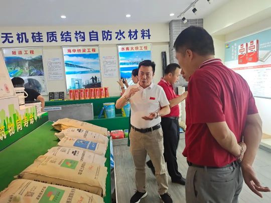 董事長劉少東向大家介紹了公司專利產品——FDS無機硅質結構自防水產品、FDS氟碳環氧防水防腐涂料及公司新一代防水產品的性能和基本用途。帶領大家參觀了產品樣板間,直觀了解產品的作用及適用范圍。