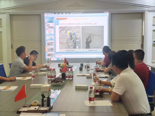 彭總詳細介紹了福地斯新一代防水堵漏修繕系列產品的特性及應用,并講解我司的運營規模、技術先進性、產品推廣及目前市場的前景。對于各領導的不解之處,也作了詳細的解答。