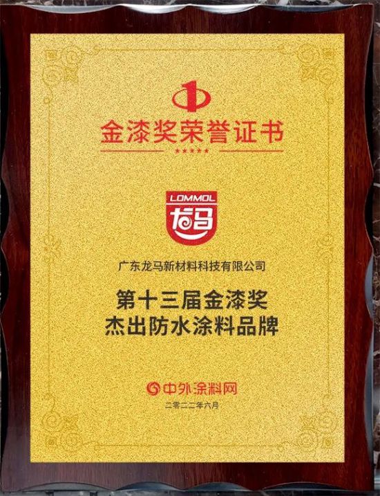 金漆獎由中國涂料行業(yè)頭部專業(yè)媒體中外涂料網(wǎng)作為中國涂料行業(yè)頗具影響力的品牌評選活動,自2009年舉行第一屆“評選活動”至今已是第十三屆,秉承“公平、公正、公開、全面”的原則和“嚴(yán)謹(jǐn)、中立、客觀”的態(tài)度,每年評選行業(yè)優(yōu)秀品牌,持續(xù)助力中國涂料產(chǎn)業(yè)的繁榮與發(fā)展。作為“防水特長生”龍馬實力出圈斬獲“第十三屆金漆獎杰出防水涂料品牌”獎項
