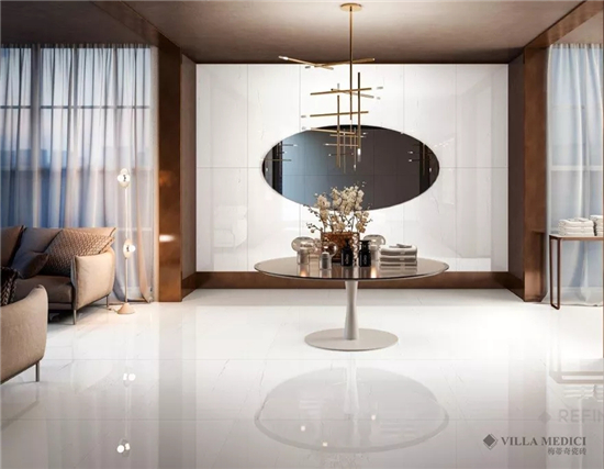 萊芬的設(shè)計(jì)師通過(guò)細(xì)致的研究,將多款珍貴大理石的經(jīng)典紋理色彩運(yùn)用到瓷磚上來(lái),再以特殊的鏡面拋光處理,令瓷磚表面呈現(xiàn)出鉆石一般的通透美感。這就是鉆石系列。