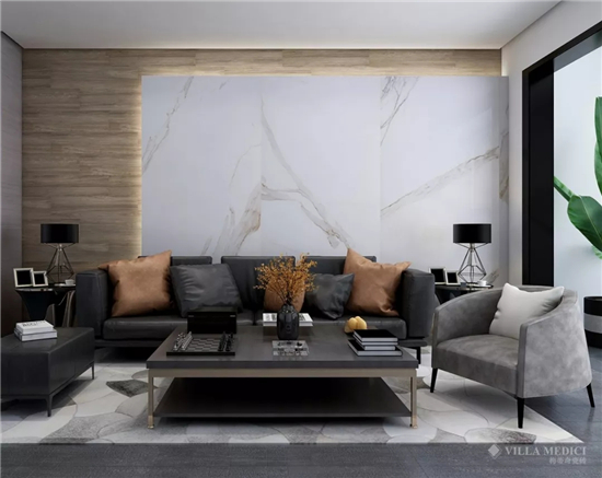 Impero呈亮灰色,表面布滿(mǎn)不規(guī)則的銀白色紋理,它在含蓄內(nèi)斂中又自然流露出優(yōu)質(zhì)大理石的奢華與雍容,具有強(qiáng)烈的現(xiàn)代氣息。