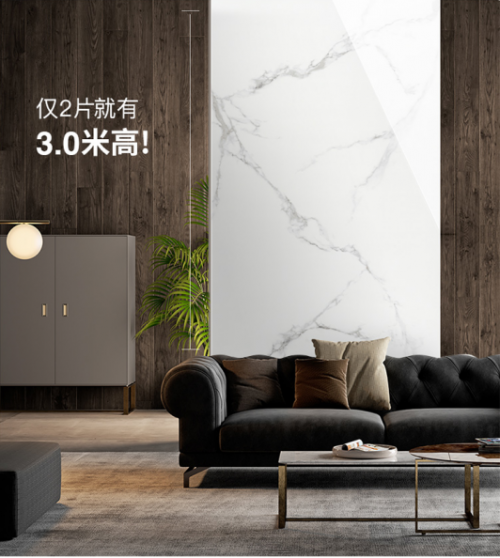 現在,隨著人們整體消費水平的提高,住宅的室內面積不斷擴大。人們不再滿足原有瓷磚的傳統規格,而是更傾向于簡潔大氣。天然大理石紋理的大型瓷磚栩栩如生的還原,整個空間裝飾的視覺效果更加完整和立體。另外,大尺寸瓷磚就像一塊布,可以根據用戶的需要隨意裁剪。切割加工后的瓷磚也更有設計感,為設計師提供了更廣闊的設計空間。同時,大板接縫較少,可以防止污垢被隱藏,更便于清洗和維護...所有這些優勢使得大規格瓷磚越來越受消費者歡迎。