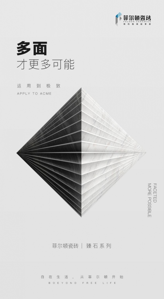 大規格指導設計理念,菲爾頓“臻石”系列大型瓷磚規格和釉面靈活自然,每件產品都像藝術品。每個紋理都是對各種事物的徹底研究和解釋,明亮的表面清晰地展現了整個空間,材料精心制作的紋理展現了整個簡單精致的磚面。