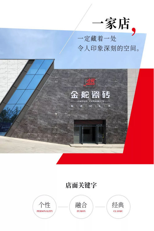 2019年,金舵瓷磚在現代簡約的展廳基調上注入更多的年輕化元素,打破對瓷磚應用的傳統理解,以全新的姿態迎接現代年輕化消費階層,從產品展示、裝飾風格、軟裝配飾入手,透過產品元素的組合混搭,以簡潔素樸的風格導向賦予空間獨特氛圍與藝術氣質,進一步提升用戶的空間體驗性。