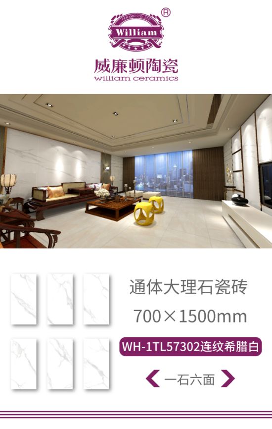 匠心不負久候,威廉頓陶瓷精制750×1500mm通體大理石瓷磚,以自然細膩的質感,演繹人居空間新美學,用品質詮釋你所向往的生活。