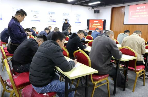 這是檢驗學員在過后有否認真學習的一場考試。30分鐘的現場考試結束后,郎瑪瓷磚進行了11月份的銷售總結。