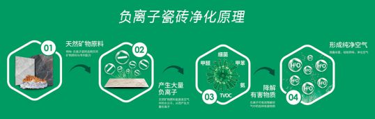 負(fù)離子瓷磚核心原理是瓷磚通過一定的方式,讓其所含物質(zhì)元素能夠與空氣中的水分子反應(yīng),誘發(fā)產(chǎn)生負(fù)離子,從而與空氣中渾濁氣體產(chǎn)生結(jié)合,吸附,集塵起到凈化的作用。所以負(fù)離子瓷磚是真的能夠改善空氣質(zhì)量,減少裝修過程中危害呼吸道健康等問題的瓷磚新品類。