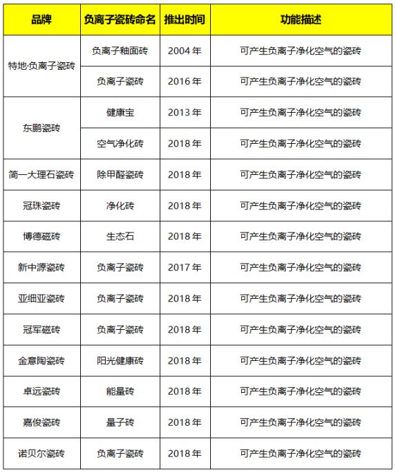 負(fù)離子瓷磚最早的發(fā)明者是特地·負(fù)離子瓷磚,第一個(gè)擴(kuò)充負(fù)離子瓷磚品類的巨頭則是東鵬瓷磚,以及還有無數(shù)帶有負(fù)離子功能瓷磚品牌,它們凈化空氣的效果經(jīng)得起科學(xué)論證,但靠譜君可要提醒個(gè)事兒,正是負(fù)離子瓷磚對凈化空氣真的有效,可負(fù)離子卻無法憑借肉眼感知,各類商家對消費(fèi)者傳達(dá)的負(fù)離子的概念也千差萬別,這對廣大消費(fèi)者認(rèn)知負(fù)離子瓷磚產(chǎn)生了一定的影響。