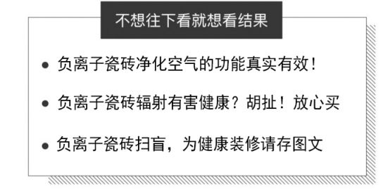或許還有人說,“選負(fù)離子瓷磚,包治百病,再也不怕釋放有害污染的劣質(zhì)裝修材料了。”