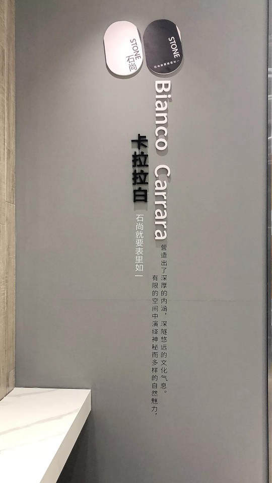大面積的頂級卡拉卡塔白鋪貼,其潔白的色澤、如玉的質感、別致的紋理、整體營造出一種雅致舒適的感覺,給人豁然一新的視覺體驗。然而那恰到好處的品牌金屬logo吊燈的點綴,既填補布局的空曠感,又讓前臺更熠熠生輝,從只可“遠觀”變成可以“褻玩”。