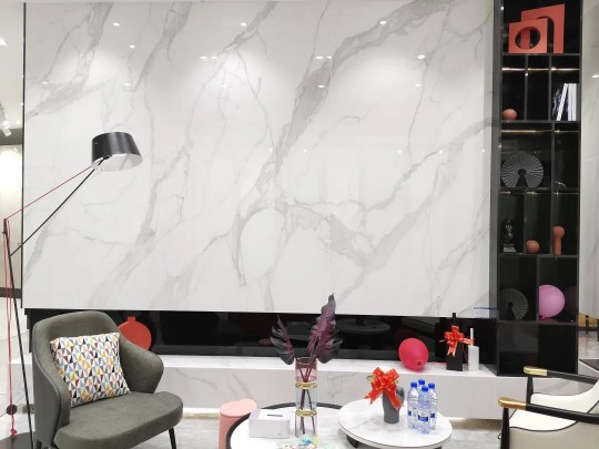坐在客廳沙發上,欣賞著時尚大氣的“魚肚白”背景墻,感嘆大板瓷磚的空間魅力。