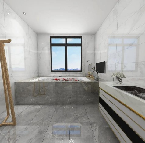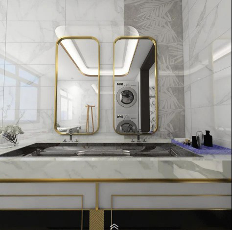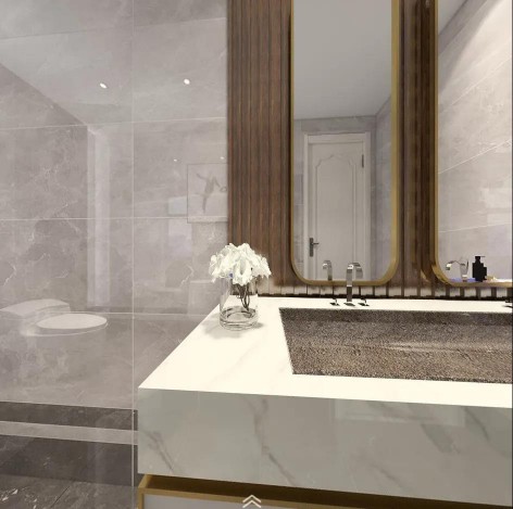 “爵士白”亮光磚面在自然光的照射下,讓衛(wèi)生間更顯明亮寬敞;墻地經(jīng)典的深淺色調(diào)搭配,讓人百看不厭;“灰色森林”花磚裝飾墻面一角,釋放盛夏自然氣息;金屬線(xiàn)條+大理石材組合,高級(jí)感滿(mǎn)滿(mǎn)。