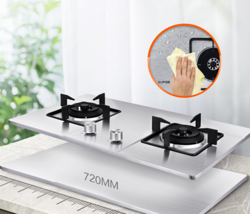 蘇泊爾 (SUPOR)QS505灶具采用不銹鋼面板設計,厚度為720毫米,真正的材質更為緊密,整體成型的超寬面板做工精細,外觀整潔高端,方便易清洗,固體材料不存在爆裂和壓碎的危險。