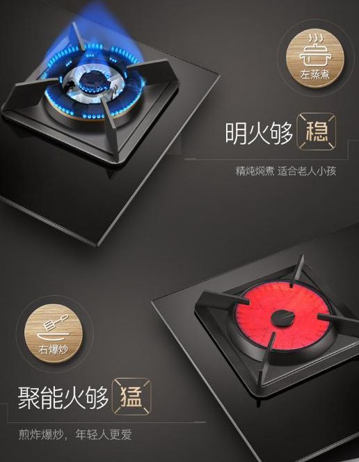 雙眼灶雙爐頭,不一樣的直火灶+聚能灶