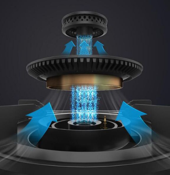 確定了自己使用的款式類型,那么就要考慮一下進風(fēng)方式了,目前有上進風(fēng)、下進風(fēng)以及全進風(fēng)模式,一般來講臺式燃燒效率會高于嵌入式的,這個主要還是和接觸氧氣多少有關(guān)系,也就是進風(fēng)方式!例如嵌入式進風(fēng)方式很多是下進風(fēng),使用的時候一般要把底部櫥柜門打開一些多進入一些空氣,那么燃?xì)庑什鸥?臺式的話進風(fēng)是不受影響!所以為了解決進風(fēng)以及提高燃?xì)庑剩F(xiàn)在很多都是全進風(fēng)設(shè)計,也就是支持上進風(fēng)以及下進風(fēng),這樣可以提高燃?xì)庑?讓火力更猛!