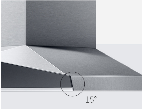 (老板油煙機8231GS創(chuàng)新15°煙機下側(cè)黃金切角設(shè)計,防撞頭好視角)