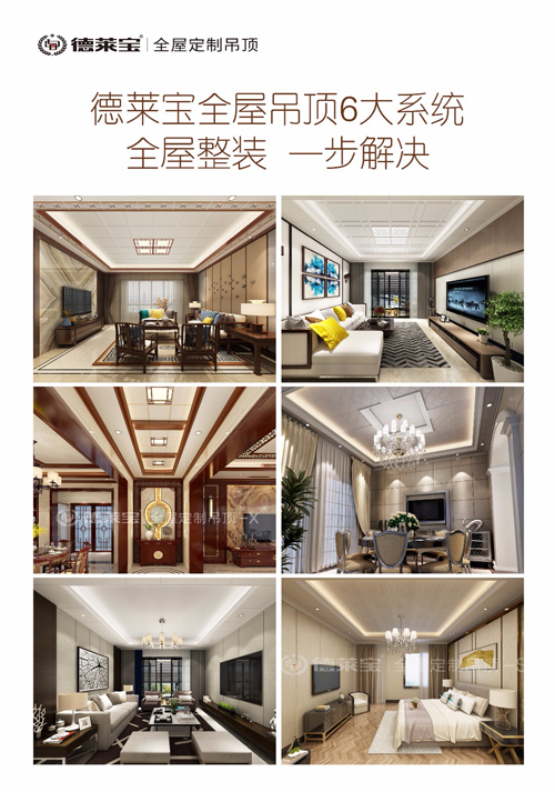 德萊寶全屋吊頂針對客廳、餐廳、臥室等六大空間,與國內外知名工業設計大師聯手創新設計吊頂產品,成功開發全屋吊頂六大裝修解決系統。橫跨地域、打破國界,德萊寶全屋吊頂產品融入多元人文精粹、注入各潮流元素,以或極簡、或立體、或婉約的線條感和各系色調,呈現了一款款風格多變、氣質不凡的吊頂產品。