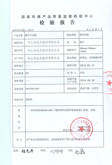 (施丹吊頂環保檢測報告)