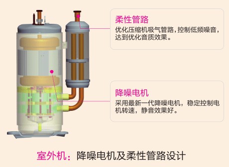 格力雅居外機(jī)采用降噪電機(jī)及柔性管路,內(nèi)機(jī)選用專利高效降噪蝸殼、風(fēng)葉,對(duì)噪音源處進(jìn)行控制優(yōu)化,達(dá)到了更高的靜音要求。