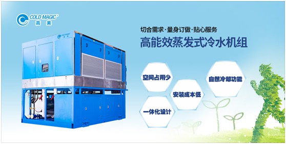 高美蒸發(fā)式冷水機(jī)組應(yīng)用了蒸發(fā)冷卻式技術(shù),其蒸發(fā)式冷卻器是以水和空氣作為冷卻介質(zhì),利用水的蒸發(fā)帶走氣態(tài)制冷劑的冷卻熱為工作原理的機(jī)器。