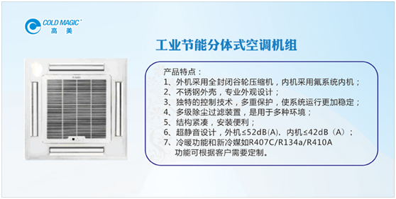 高美空調(diào)隸屬于廣東高美空調(diào)設(shè)備有限公司,這是一家集中央空調(diào)的研發(fā)、生產(chǎn)、銷售和服務(wù)于一體的大型現(xiàn)代化強(qiáng)企。成立多年,高美企業(yè)始終堅(jiān)持創(chuàng)新研發(fā),致力于為各大購物中心、酒店、體育館、電影院、醫(yī)院等大型公共場所提供環(huán)保節(jié)能的空調(diào)系統(tǒng)及相應(yīng)配套的技術(shù)服務(wù)。而工業(yè)節(jié)能分體式空調(diào)機(jī)組,便是高美空調(diào)的其中一大杰作。