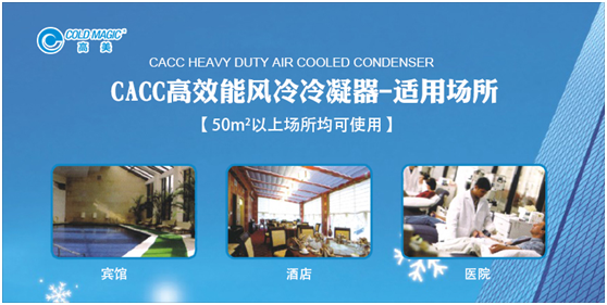 通過多年的潛心研發,高美空調所推出的風冷冷凝器產品,集優越的產品性能及優異的品質優勢于一身,竭力為賓館、酒店、醫院等大型工程提供了高規格、系統化服務,贏得了客戶的一致好評。但高美空調不止步于此,在不斷地探索鉆研及引進國際先進技術后,又成功將效能更高的CACC系列風冷式冷凝器推向市場。