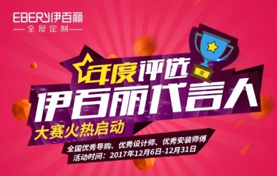 1月3日,“伊百麗代言人”全國評選活動正式公布獲獎名單,共30名家人分別獲得“全國優秀導購”“全國優秀設計師”及“全國優秀安裝師傅”的殊榮。
