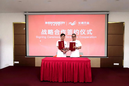 隨后,在雙方精英團隊的共同見證下,美佰利與華洲木業舉行隆重的戰略合作簽約儀式,雙方領導在簽約本上簽字并合影留念,預示著本次的戰略合作正式拉開序幕。未來,雙方將加緊產品、定制、營銷等各方面的合作,攜手共創板木定制新未來!